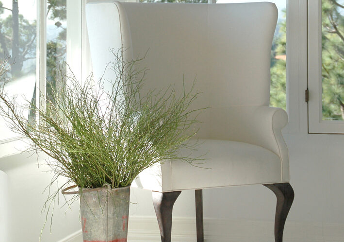 LA based Kathleen Clements designs simply exquisite furniture which stamps it’s refined personality firmly in any space it occupies. Her gorgeous pieces veer between simple sophistication and beautifully rustic. See the immaculate winged armchair above with it’s rich cabriole wood legs. Formidable! See more at Source below.   Beautiful placement and usage of raw rustic furniture and accessories. Check the rug. It had to be ‘pre-loved’ or worn – brand new wouldn’t cut it in this setting. The underpass artwork is perfect. Takes nothing away but adds to the style and simplicity.   Que bella! _______________________________________________________________________________________________________   Source: Kathleen Clements