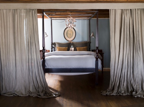 The industrial home accents go so well with the linen curtain walls in this incomparable space.