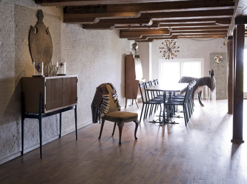 This rather fantastic Amsterdam loft has been designed by Dutch design consultancy UXUS. It is now a private residence located in a historic building on one of Amsterdam’s famous canals. The canal house is located in a 250 m2 18th century warehouse with a panoramic view over the city. The owners wanted to keep the original open-plan layout of the space so, UXUS created a series of dramatic curtain walls, which could be opened and closed accordingly. The bold interior accessories and accents were all selected to reflect the eclectic tastes of the lucky owners.