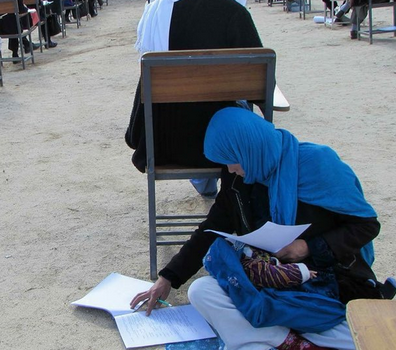 Inspiring photo from social media: this mother is taking university entrance exam while taking care of her child, in Daikundi. Afghan women are unstoppable. pic.twitter.com/lus0eeuH48