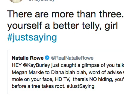 HEY @KayBurley just caught a glimpse of you talking on @SkyNews comparing Megan Markle to Diana blah blah, word of advise Girl, pluck those hairs from that mole on your face, HD TV, there’s NO hiding, you’ve got about 3 to pluck, hurry up before a tree takes root. #JustSaying
