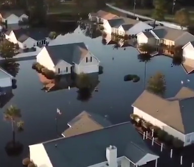Drone footage captures a neighborhood completely inundated in Longs, South Carolina where the Waccamaw River has crested following #Florence.