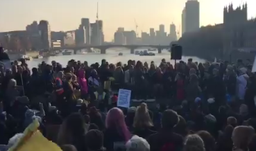 Blackfriars Bridge at the @ExtinctionR – @GeorgeMonbiot – 'A fantastic sense of strength and solidarity here' pic.twitter.com/OvBJeSHZeI
