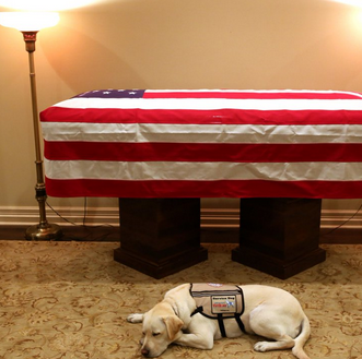 Sully, former President George H.W. Bush's service dog, lies next to his casket ahead of national memorial services for Bush this week.