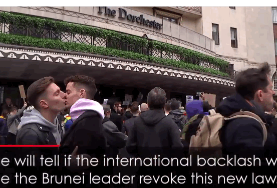 Protesters in London crowded around the Sultan of #Brunei owned Dorchester hotel to protest Brunei's new laws that would punish homosexuality with stoning. pic.twitter.com/R81mFu0Tsv