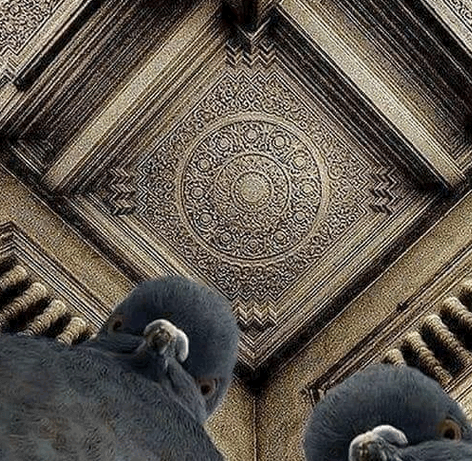 The photographer was lying on the ground, trying to shoot this ceiling. The pigeons were concerned. pic.twitter.com/kAXDbwE3Qx