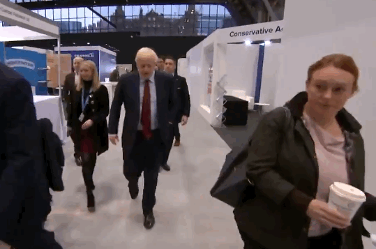 Did anyone spot this moment at the Conservative Party Conference?@BorisJohnson was handed a plastic coffee cup by an aide, before another aide immediately snatched it away.