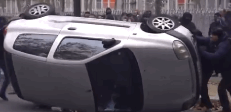 Cars have been overturned and burned as the centre of Paris was gripped by violent and angry protests.
