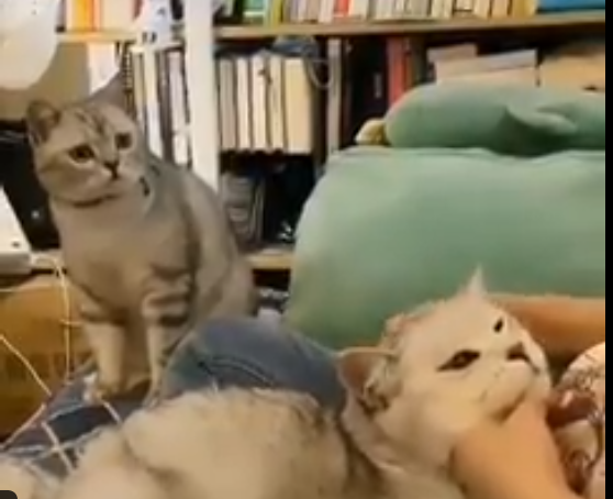 cat watching sibling get cuddles