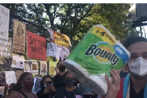 A man wearing a Puerto Rican flag tosses paper towel over the fence toward the White House. “Never forget,” he said. pic.twitter.com/tZkalqgB2D