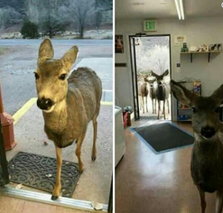A Gazelle entered a shop in the state of Colorado. The owner decided to give him some chocolate and biscuits. He left … half an hour later he came back bringing his entire adorable family ! 😊😍 pic.twitter.com/kplDfyLc0g
