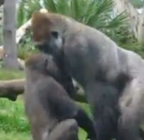 gorilla admonishes unruly son