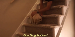 Pup learns how to climb stairs with his Pops.