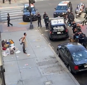 ‼️⚠️TRIGGER WARNING⚠️‼️ Just witnessed around 20 cops pull up on ONE houseless woman and fire 4 rounds into her as she was walking the OPPOSITE DIRECTION. This is the result of calling kkkops on mentally ill folks. Is the inconvenience of noise outside your home worth a life???? pic.twitter.com/dPV5LEyJaL
