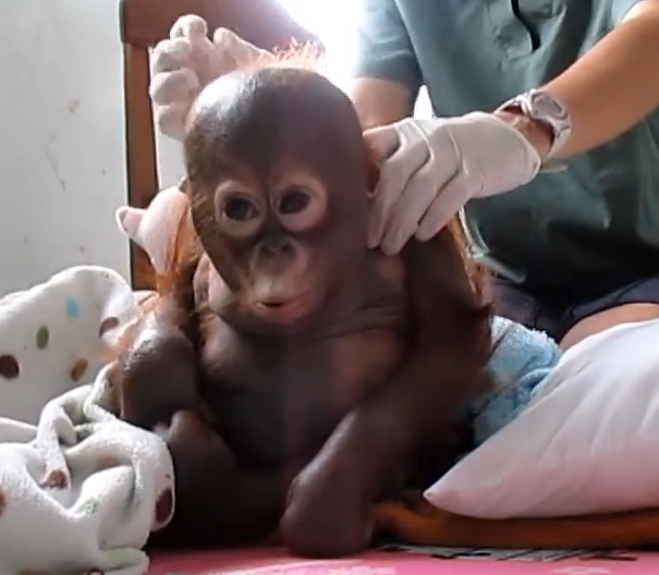 Rescued baby orangutan.