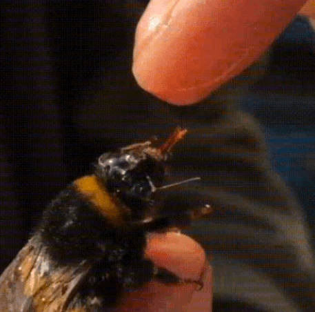 Reviving an exhausted bumble bee with sugar water from r/interestingasfuck