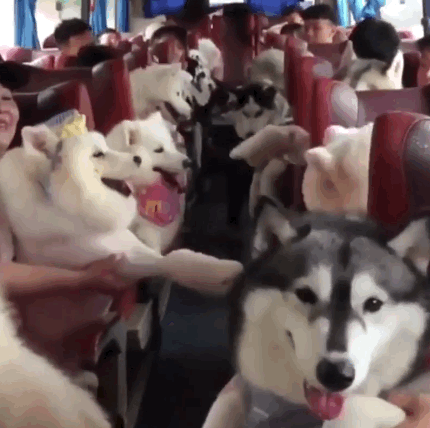 the husky tour bus is overflowing with cuteness
