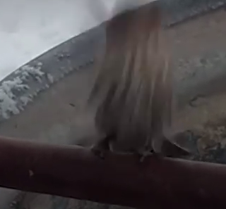 Tiny bird frozen to metal fence.