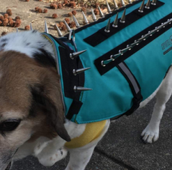 This dog used to get attacked by other dogs in the neighborhood, not anymore. She now wears a Coyote vest armed with sharp spikes