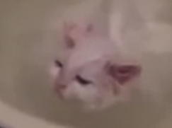 cat refuses to leave warm bath